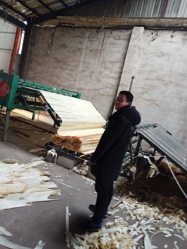 实践活动前,考虑到木材透气、环保等多重使用优势,经过一番讨论和甄选,实践团把目标锁定到了兴盛板材厂。进入板材厂后,同学们在工作人员的带领下先参观了板材厂的设施和工作流程。接着,工作人员指导同学们完成了削木料这项工作。几位同学跃跃欲试,随行的工作人员一边指导一边讲解。“砍削木料,注意砍削时不宜用力过大,不可直上直下砍,斧刃应与垂直的木纹保持45度左右,否则,木料会开裂”。随后,实践团又参观了木材加工的过程,全程机械化大大的节省了人力与物力,生产效率也得到一定保障。在木材加工间,工人师傅告诉同学们“木材加工行业对产品质量有十分高的要求,对产品的质量一丝不苟,这不仅是对顾客负责,也是对自己木材厂的口碑、未来的负责。”根据实践团的了解,兴盛板材厂自发展以来一直都积极引进新技术,以更好的适应社会需求。临实践活动结束前,板材厂的工作人员还教会同学们如何挑选三合板。“木纹清晰,正面要光洁平滑,切割面没有脱胶现象,用手敲三合板各部位时声音发脆。”