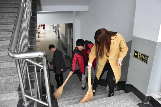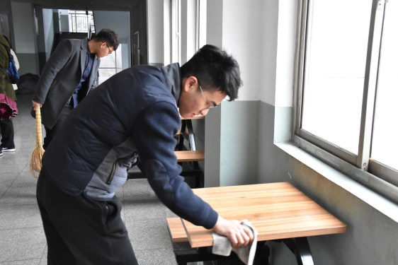 活动伊始,在九号教学楼108教室进行学习“雷锋精神,争做五有好青年”主题座谈会,座谈会上,曹云龙首先发表感想,他强调雷锋精神激励着好几代人不断前行,我们当代老员工应该大力学习雷锋热爱党、热爱祖国的坚定信念。随后,参加座谈会的员工干部从自身经历以及身边同学的道德模范、好人好事,号召公司员工积极投身学雷锋活动中去。随后在员工骨干的带领下,对九号教学楼的公共课桌、宣传展板以及楼道灯公共场所进行卫生扫除,并且在卫生扫除过程中进行忆苦思甜思想交流活动,部分同学通过分享寒假自身参加环卫志愿活动经历,进一步说明雷锋精神对五有人才培养的重要性,最后所有参加活动成员共同对九号教学楼教室进行了桌椅整理。