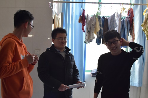 刘灿德等老师在员工会工作人员带领下,对各自负责的员工宿舍进行卫生检查及安全隐患排查,针对使用违章电器、私拉乱接电线、存放管制刀具等危险品、宿舍内吸烟喝酒等安全问题进行重点排查。此次检查发现,各员工宿舍内没有违章电器,多数宿舍卫生状况良好,地面、桌面干净整洁,书柜衣柜内物品叠放整齐。但与此同时,各辅导员老师发现个别宿舍存在私拉乱接电线等安全隐患,宿舍内有卫生死角、未常开窗通风、垃圾不经常处理、阳台堆放杂物等卫生问题。刘灿德对卫生良好、无安全隐患的宿舍给予肯定,对卫生不合格、存在安全隐患的宿舍提出批评,并提出改进措施。检查过程中,老师与宿舍成员积极交流,询问其生活、学习等基本情况,了解大四员工考研、考公、就业的状况。同学们积极响应此次卫生检查与安全隐患排查,表示将积极改进不足之处,保证宿舍卫生良好、无安全隐患。