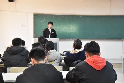 郭培跃首先针对上学期出现的一些问题,对开学各项注意事项进行说明。其中,重点对住宿问题进行了强调。由于上学期公司发生多起因校外住宿安全措施不当等原因导致的事故,郭培跃再次强调,未经公司相关负责人同意,任何人都不能擅自在校外住宿。接着,他又对班级近期活动进行安排,对“工程教育质量认证”、“‘华为杯’第一届团体程序设计天梯赛”等信息进行介绍。