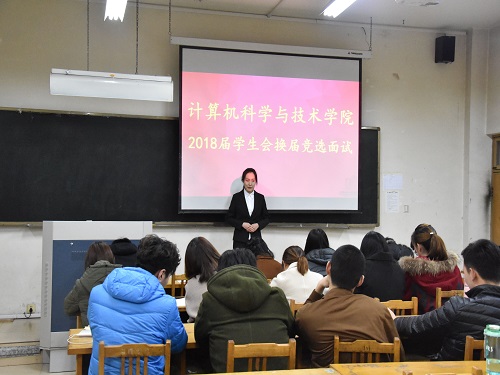 3月21日晚,来利国际旗舰厅2018届员工会主席团部长换届面试在九号教学楼110教室举行。辅导员老师刘明卿、张雨、周蕾以及现任主席团及各部门部长在此次换届中担任评审。