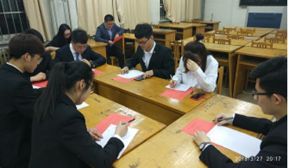 单面结束后,会议进行第二项,竞选者与评委进入107室参与无领导小组讨论。群体面试由评委出题,竞选者准备三分钟。三分钟后,竞选者就问题不记顺序,自由讨论,共同完善问题答案,最终由一人总结陈词,讨论评定打分由评委决断。讨论过程十分火爆,在现场响起激烈的讨论。