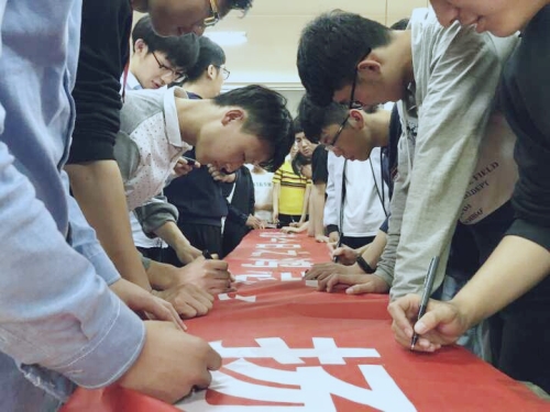 讲座结束,全体同学进行横幅签字,以此展示软件1604团支部积极向上的态度和勇攀高峰的决心。最后,软件1604团支部全体同学与金泽宇合照留念。