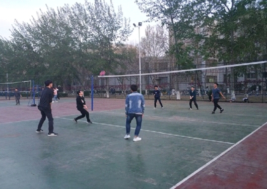 五组成员在运动场上挥洒汗水,激烈的运动洋溢着青春的气息。排球、篮球、跑步、笑靥无一不体现出作为山理工老员工有健康体魄与阳光心态。