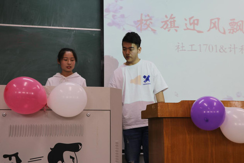 3月25日下午,来利国际旗舰厅计科1710团支部与社工1701班团支部共同进行以“校旗随我飘扬”为主题的团日活动。
