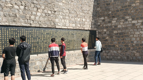 随后,支部成员来到黑铁山抗日武装起义纪念碑前,深切了解抗日武装起义的背景与艰辛,体会抗日战争胜利的来之不易。同学又来到黑铁山抗日武装起义英烈谱,看着诸多抗日烈士,同学们仿佛目睹了抗日的艰辛,团支部成员更加深切的意识到要让不怕苦不怕累的抗日精神薪火相传。