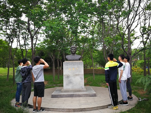 返校后,团支部又集体去员工冯思广雕塑前,同学们深深地弯腰鞠躬,烈士们已经离开,生命更崇高的价值在于无私奉献。支部成员们励志肩负起历史赋予的光荣使命,不忘初心,一心一意跟党走。