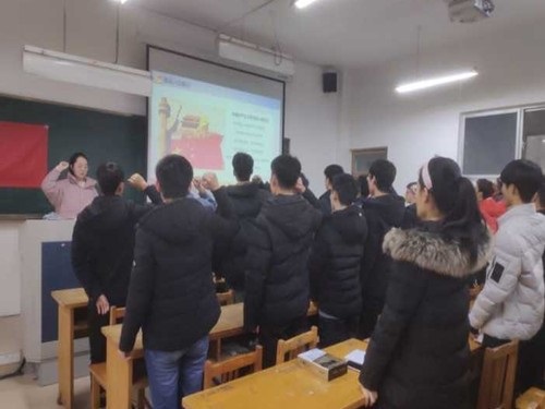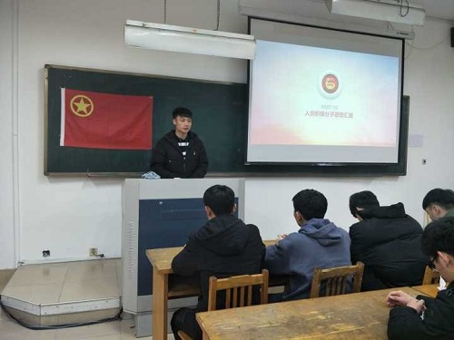 活动开始,团支部全体成员学习并且合唱团歌,宋书晓讲解团歌歌词的深层含义。随后活动进入重温入团誓词环节,全体起立、唱团歌、宋书晓宣布新团员名单、团支部代表给团员授予团员标志,佩戴团徽。入团仪式结束后,三名入党积极分子徐航、孔祥伟、宋书晓分别进行思想汇报,其中,徐航讲述了自己的学习感悟,他表示通过党课的学习,加深了自身对党的认识,对党的性质党的宗旨的认识,这引导着他刻苦学习,努力做到全心全意为人民服务;孔祥伟说:“通过学习,学到了党的优良作风,明白了坚持优良作风的重要性,知道了只有思想不断进步才能抵挡的住时代的考验,我会努力为做一名合格的团员、党员而努力。”活动后期,宋书晓对团旗、团徽、团歌的使用做了详细的说明,并发表自己参加此次活动的感悟,希望同学们可以切身感受到作为一名团员是光荣的,要在团精神党精神的领导下不断进步,履行一个团员应尽的义务,争做一名合格的团员。