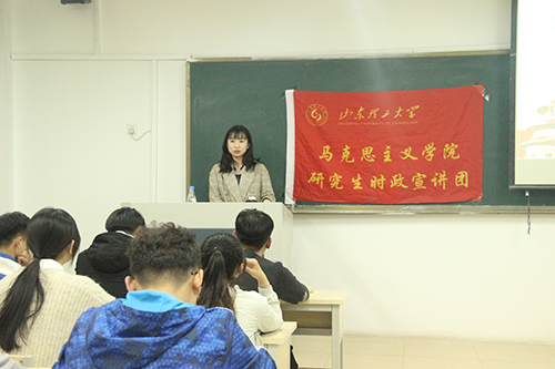 第三部分了解政府工作报告,宣讲团成员解读了十大民生热点问题,从就业、脱贫、污染防治到看病问题、住房问题以及网络提速,对各个问题从原因到解决办法进行了深入解读;最后主讲人总结了两会对老员工的启示,希望同学们坚持党的领导不改初心跟党走,艰苦奋斗成就个人幸福,遵循实事求是原则,一切从实际出发,了解国情,立足现实规划人生,大胆探索、勇于创新。