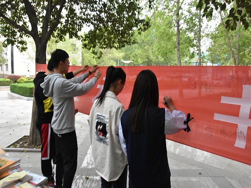 此次活动赠送的书籍主要是大四毕业生的学习笔记,复习资料以及考研自习室中无人认领的考研、考公、专业课程指导书及课本等。活动开始前,工作人员便积极组织干事收集毕业生的赠送书籍并将考研自习室中无人认领的书籍整理收集起来并进行分类。这些多样的书籍既满足了同学们的不同需求,也寄托了已毕业同学对有意向或将要考研考公同学们的期望与祝福。活动过程中,同学们仔细翻阅,认真挑选,体现了他们对此次活动以及学习的热情。这些书籍,在一定程度上给在校员工带来了更多的信心,以便于更好的为考研考公做准备,前来挑选的同学都满载而归,展现了他们对未来的努力、乐观与积极。通过对他们的采访,同学们谈到对此次活动的感受,他们表达了对已毕业捐书同学的感激与祝福,同时他们认为这些毕业生留下来的宝贵财富将鼓励同学们努力学习。活动中,工作人员认真维持活动秩序,根据同学们的不同需求来帮助他们挑选书籍资料。在每位参与者挑选完书籍后,工作人员邀请同学们在横幅上写上自己的姓名,这是对他们认真的学习态度的肯定,更是对公司学子将大展宏图的美好祝愿。