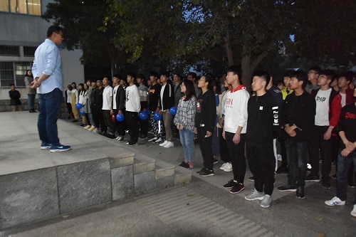 4月22日晚,来利国际旗舰厅辅导员王寿朋、李文婷、刘岩到9号教学楼门前广场对参与运动会训练的健美操、仪仗队成员表示慰问。