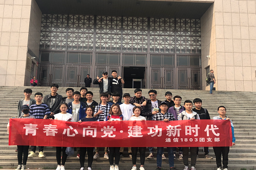 此次团日活动分为党知识竞答比赛、参观党的发展历程、开展主题团课三部分。5月5日中午通信1803团支部全体成员出发前往市博物馆。在馆外进行了团日活动的第一部分党的知识竞答环节,活动开始之前,全体成员认真阅读题库,赛时积极参与抢答有关党和团的问题,展现了通信1803团支部成员对中国共产党以及“五四精神”的了解。团日活动第二部分,成员们在市博物馆五楼进行参观,了解建党过程,明晰作为青少年的我们对于时代的重要性,激发了成员们以自身行动践行五四精神的热情。活动结束后,所有团支部成员进行合影留念。5月5日晚上在9教208教室进行团课学习,以此作为团日活动的第三部分,此次团课学习提升了团支部成员对共青团的认识。活动过程中,成员们就如何践行五四精神展开激烈讨论,五四精神在成员们心中已经埋下了种子,党在成员们心中已经是不可替代的存在。