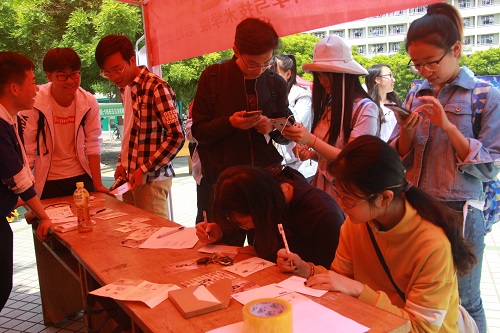 此次活动的形式是同学们在明信片上写出想对母亲说的话,并留下收信地址,在这之后由志愿者团的工作人员们根据所留地址邮寄出明信片。