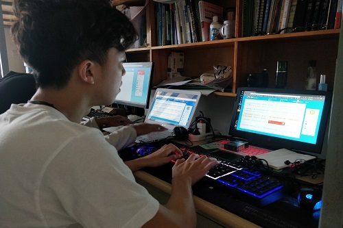 比赛伊始,参赛人员蓄势待发,面对着电脑屏幕上的字符,参赛人员充满激情,热血澎湃。参赛成员在指尖的较量上无所畏惧,在手速的比拼上激昂澎湃,他们以双手敲击键盘的频率与声音,描绘出机器时代的碰撞,化成信息时代美妙的韵律。比赛过程中,计算机协会骨干成员与参赛人员共奋进,他们在线上时刻观察着比赛进行程度与比赛人员的大体成绩,同时,为维护比赛网站在比赛过程的稳定性,他们需时刻维护网站的整体稳定。比赛结束后,参赛人员根据网站页面所提供的引导提交比赛成绩,完成打字比赛。工作人员在比赛时间截止后根据网站所给出的比赛排名数据分出一、二三等奖,并在线上公布比赛成绩。
