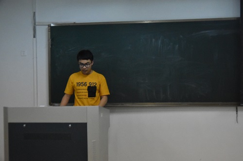 接下来孙金元、刘雪杰先后上台与大家分享了实践活动中的一些照片,跟大家讲了一些实践活动过程中的故事,参与社会实践的体会,带给自己的影响,以及自己的一些经验。紧接着,梁燕上台为大家讲了小水滴社团的状况,自己去年赴西部甘肃地区的亲身经历,用讲故事的形式为大家讲述了支教地区简陋的环境以及孩子们艰苦的环境以及介绍了小水滴今年的支部情况。最后张文博希望大家好好准备立项大赛,争取在立项大赛中取得优异的成绩。