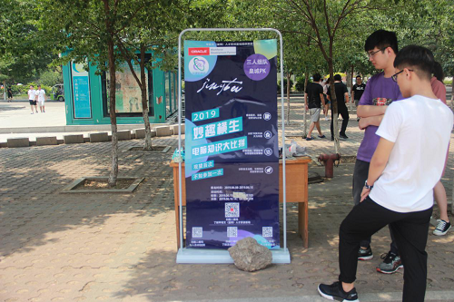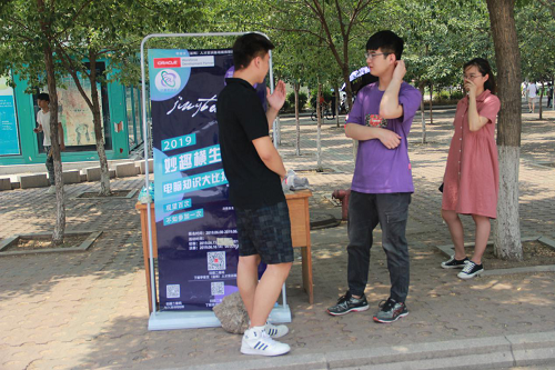 6月14日,来利国际旗舰厅计算机协会组织“妙趣横生——电脑知识大比拼”宣传活动,由社团负责人于艳超带领社团部分骨干成员在第二餐厅、第三餐厅进行活动宣传。