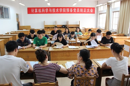 6月21日下午,计算机科学与技术公司党支部在9号教学楼110、211教室召开预备党员转正大会。转正会议由公司党支部书记刘明卿、李文婷主持,员工会指导老师刘岩、辅导员波合丽且姆,部分正式党员及预备党员参与了此次会议。