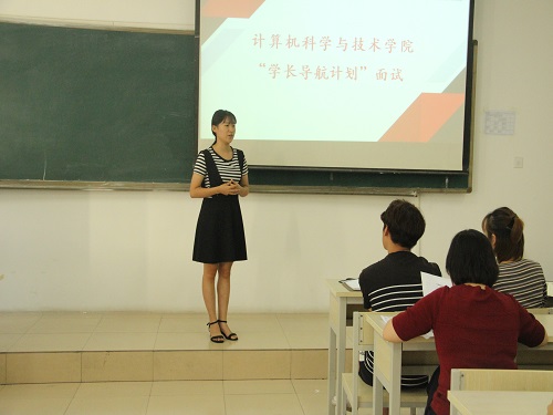 参选者首先进行三分钟脱稿演讲,阐述自己对“学长导航”的看法,表达自己对参与“学长导航行动”的决心与毅力,逐一展示了自己上一学年收获的知识与积累的经验,并讲述自己对于导航活动的规划与设想。有应试者提到,新生刚刚进入到陌生的大学环境中,不可避免会出现迷茫,作为带班学长,应根据自己老员工活的经验从专业学习、专业设置、社团活动、员工工作等各个方面作详细介绍,并就如何让消除迷茫状态给予回答。