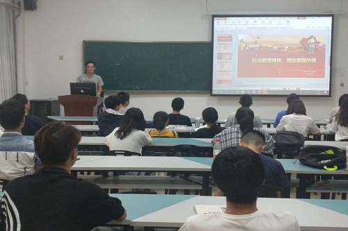 爱国主义是中华民族的优良传统和民族精神的核心内容,构成了中华民族几千年来生生不息的发展动力。为加强全班同学的爱国主义教育,弘扬爱国精神,激发全体同学的爱国热情。 9月18日上午,软件1705班于9号教学楼109教室开展“弘扬爱国精神激扬爱国热情”主题班会。此次班会由班长王方琛主持,班级全体同学参与。