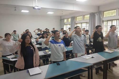 随后,班级全体成员进行了爱国宣誓。通过倡议书的宣誓,同学们更加清楚地明白了当代青年一代身上所肩负的富强中国的职责与使命。王方琛号召同学们发扬革命先烈的艰苦朴素,吃苦耐劳的革命精神,为实现中国梦从现在开始努力学好自己的专业知识,将来踏踏实实工作建设好我们的祖国。