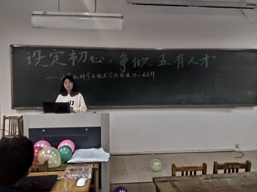 活动开始首先由高浚潇向同学们进行宣讲,通过PPT的形式传达了吕传毅对大家争做“五有青年”的殷切希望同时生动的向大家呈现了五有青年的的概念,在宣讲过程中高浚潇一改同学们对往日团日活动宣讲活动枯燥无味的印象,积极与同学们进项互动,利用击鼓传花的形式向同学提问使每位同学参与其中。