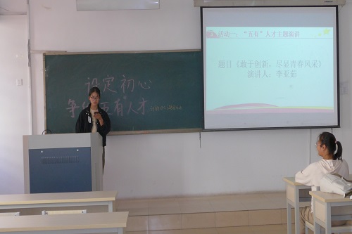 本次活动分为四个部分,首先,周鑫详细的为同学们解答了何为“五有人才”这一重要问题,并且向同学们强调了“有社会责任”“有创新精神”“有专业知识”“有健康身心”“有实践精神”五有精神对以后学习,工作以及生活的重要价值和意义。为了能加深同学们的印象,周鑫利用了一些鲜活的事例,比如来利国际旗舰厅暑期社会实践团和2004届毕业生李进的演讲形象的使“五有精神”浮现在同学们的眼前。