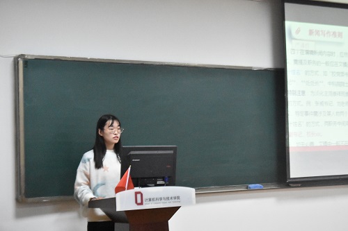 培训会开始之前,新闻部有关人员安排与会人员签到,以保证培训会顺利进行。会议伊始,同学们以热烈的掌声欢迎此次培训会的主讲人,王颖与同学们进行简单的交流后步入正题,她以新闻照片的基本要求为切入点,为同学们介绍照片的尺寸与构图。随后,她从新闻结构开始展开,提出新闻写作的要点以及基本要求,并简要介绍了新闻的语言特点。她对新闻的时效性、严谨性和简洁性做了着重讲解,同时强调了新闻写作的准则,并指出新闻写作中容易犯的错误,如职务称谓的使用、活动时间地点的书写、公司部门的主次和一些关键词的用法,并用举例的方式向同学们展示易错点,并让同学们改错。此次培训,王颖以PPT的形式给同学们分点分布展示并讲解新闻基本要点以及写作基本知识,使同学们对新闻有了更深一步的了解,培训会结束后,同学们纷纷表示受益匪浅。