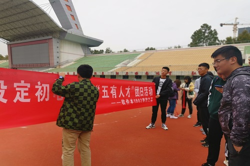 观影完毕后,王俊智带领同学们到第二体育场进行签名活动,在“设定初心,争做五有人才”的横幅上,全体成员依次签名并下定决心,努力向上,为祖国贡献,以此表达对祖国的热爱。随后,由成晓雨、王俊智等人组织大家进行绑腿跑活动 ,让“有健康身心”的内涵得到实践。下午,软件本1902班携手软件本1901班展开辩论赛,围绕“责任与能力谁更重要”展开激辩。让同学们更深刻的认识了责任与能力之间的关系。活动结束后团支部成员合影留念。