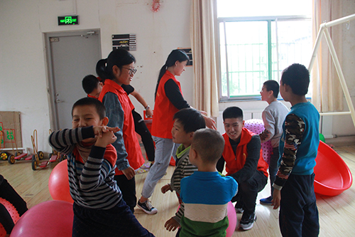 活动之初,志愿者团的成员们先联系了爱之翼特需儿童公司的负责老师,在负责老师的带领下进入公司。之后参加活动的志愿者们分成两个小组,其中一个小组负责教年龄较大的孩子们写字以及如何拼图,孩子们在志愿者团成员的指导下专注地拼图,不久就将一幅完整的图画拼好了;另一个小组负责陪伴年龄较小的孩子们玩耍,在欢声笑语中志愿者团成员们陪孩子们度过了一个快乐的下午。在此过程中,孩子们玩的非常开心,小朋友们也非常热情,一直抓着志愿者成员的手,大手牵着小手,温暖不停传递。最后志愿者们离开公司,在分别的时候,孩子们恋恋不舍地与志愿者团的哥哥姐姐们道别。