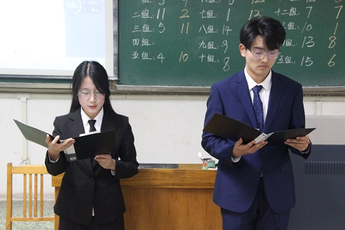 比赛开始前,参赛者有序签到并入座。工作人员介绍此次大赛的比赛形式,即此次比赛流程分为自选配音与即兴配音两个环节。比赛在主持人的开场白下拉开了序幕,各支参赛队跃跃欲试,伴随着大屏幕上视频的播放,各支队伍按照比赛顺序依次上台展示。比赛过程中各成员之间准备充分,配合默契。第一环节,参赛选手先根据各自小组选择的英语影片进行配音。比赛中,选手落落大方、毫不怯场,他们使出浑身解数,展示自己的英语实力。他们用优美的声音、生动的演绎,再现了扣人心弦的电影片段,为在场观众和评委呈上了一场视听盛宴,赢得了观众的阵阵掌声。第一环节结束后,评委根据各组的表现进行打分。第二环节,参赛选手要根据之前抽签抽到的视频进行现场配音,配音难度大大增加,但选手们毫不怯场,积极准备,相互之间默契配合,将自己所表演的角色展现的淋漓尽致。同学们表演生动,赢得了阵阵掌声,现场气氛十分活跃。比赛结束后,由工作人员进行分数汇总,并宣布本场比赛的一二三等奖的获得者。最后,在比赛人员有序离开后由工作人员进行现场卫生的打扫。