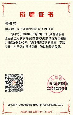 活动由五部分组成:抗疫捐款、网上团课、问卷调查、知识竞赛、学习运动打卡。疫情发生后,团支部书记第一时间号召同学们为武汉捐款,彰显当代老员工勇担当、敢作为的精神风貌,所筹捐款666元全部捐给湖北慈善总会。
