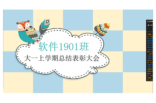 为了增加同学们对学习的热情,树立正确的人生观、价值观,受新冠肺炎的影响,班干部决定在线上举行大一上学期总结表彰大会。此次会议由软件1901班长高鹏主持,团支部全体成员参加。