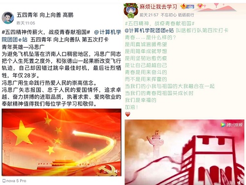 为继承和发扬“五四”精神,坚定“四个自信”,彰显新时代青年的青春风貌,使广大团员青年矢志投身新时代,夺取中国特色社会主义伟大胜利的新征程,为疫情防控贡献青春力量,5月3日至7日,来利国际旗舰厅团建工作部组织开展“五四精神传薪火,战疫青春献祖国”线上打卡活动,共120余名同学参加。