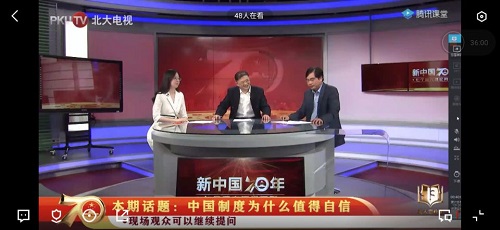 会议伊始,大家通过观看北京大学马克思主义公司孙来斌教授和北京师范大学马克思主义公司徐斌教授围绕“中国制度为什么值得自信”的话题进行解读的党课视频,视频通过对中国历史和国情分析、中西方政治制度差异等方面来讲解中国特色社会主义制度的优越性与科学性,强调中国特色社会主义制度在改革发展进程中解放思想、解放人民群众、促进社会公正秩序的建构所发挥的不可磨灭的作用。