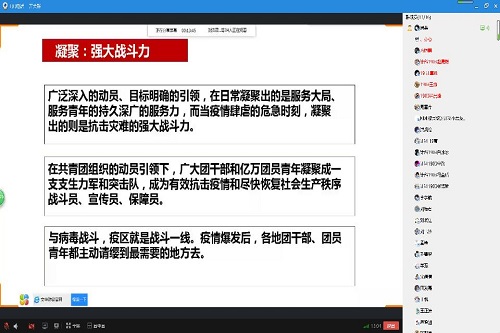 为弘扬五四精神,激励当代青年的家国情怀,计科1903团支部于5月14日下午开展了以“绽放战疫青春,坚定制度自信”为主题的团日活动,此次活动由计科1903团支部书记周鑫主持,团支部全体成员参加。