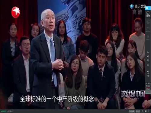 会议伊始,党务人员为大家播放《这就是中国》,由复旦大学中国研究院经理张维为教授和清华大学王绍刚教授为大家讲解中国目前的扶贫工作和有关中产阶级的相关问题。张维为从人民住房自有率和年收入两个角度出发,将中国现状和德国、美国相比,得出了中国今天取得的如此巨大的成就,经得起任何国家进行比较的结论。王绍光从何为中产阶级、如何去缩小不平等收入以及怎么样去减少影响社会发展的不安全因素三方面,为大家讲解了中国近几年在平衡经济收入差距方面所做出的努力。