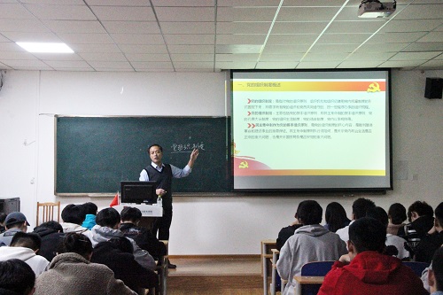 最后,田兆富以党的十九大章程为实例向同学们指出,党员应该认真学习并努力掌握党纪条规和法律。他重点介绍了党章的相关规定,要求入党积极分子必须自觉接受党的纪律与约束,同时他以多条条例和准则向同学们讲解党的纪律的重要性,明确党的纪律与界限,强调党员的先锋模范作用。最后,他希望同学们应该明确党的章程,自觉遵守党的纪律,不断提升自身思想水平,勇做有共产主义思想觉悟的先锋战士。