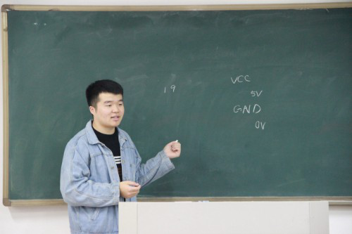 培训会伊始,协会成员携电脑到场后进行现场签到后依次就座。随后,协会骨干成员为每一位参会成员安装电脑软件并发放单片机。在准备工作结束后,协会骨干成员张伟坤上台以讲解PPT的方式进行有关单片机的知识培训。培训会正式开始,成员们便展现出良好的状态,在讲解期间,张伟坤多次与参会成员进行现场互动,并耐心解答参会成员的有关疑问。参加此次活动的协会成员在台下认真聆听,并积极提出疑问。现场气氛活跃,学习氛围浓厚。培训中段,协会骨干成员上台讲解所安装软件的正确操作步骤,张伟坤从旁协助。培训过程中,协会骨干成员们依次查看并纠正协会成员的操作错误,成员们认真倾听,虚心改正。接下来成员们积极举手与骨干成员进行提问和交流,骨干们也耐心解答,现场氛围十分活跃。培训进行到最后,协会骨干成员们在教室中检查成员们的学习情况,并告诉成员们几种物联网题目的软件和下一次培训会的时间与地点,培训会结束。