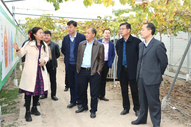 在曹王镇葡萄规范化栽培及复合种养技术示范基地,田爱奎一行参观了葡萄种植大棚,双方就葡萄的栽培模式、生长周期、管理技术等各个环节以及葡萄架下经济,鸡、羊复合型养殖技术、经营管理、项目收益等方面进行了深入探讨。在山东斯诺自动化设备有限公司,田爱奎一行参观了自动化机器人生产车间,详细听取企业发展及相关项目进展情况汇报,围绕未来规划、人才引进、科技创新等问题与企业负责人进行了交流。