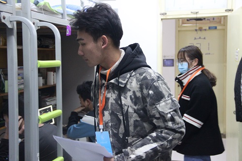活动开始前,志愿者以班级为单位报名参与活动,并通过简单的培训明确活动的大体流程以及具体分工安排。活动正式开始,在清点人数之后志愿者跟随工作人员前往不同的宿舍进行走访。工作人员首先对宿舍里的卫生进行了细致的检查,各个宿舍通风良好,被子的叠放、地面的卫生、桌面物品的摆放以及厕所的整洁程度等均符合公司要求。随后志愿者询问同学关于规范用电、防盗防骗防火等宿舍安全问题并在交流走访的过程中相互学习宿舍维护管理的优点,同时发现自己的不足并及时改正。接下来,志愿者们给同学们分享生活小妙招以及自己的宿舍卫生打扫整理的经验,同学们认真聆听并做好相关笔记。