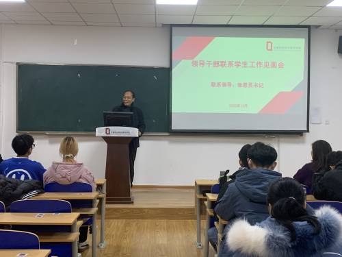 会议伊始,通信1904班同学首先对张思灵的莅临表示欢迎。随后由班长李传运和团支部书记孙先涛分别从班级建设和团支部建设情况展开分析,总结了一年半以来通信1904的班级发展情况、取得的成就以及对未来的规划。张思灵对班级的发展表示了肯定。