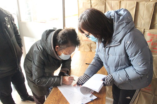 活动开始前,志愿者协助工作人员整理核对福利物品信息,并明确福利发放的规定。此次活动面向全校离休老同志,年终福利根据自身情况选择不同的套餐,这其中的福利物品包括大米、小米、面粉、水果等,套餐在发放前已由老同志选择,并由工作人员汇总将选择情况予以张贴,方便老同志们查询。活动伊始,志愿者协助工作人员将领取前的有关注意事项告知老同志,并引导他们签名并填写好备注栏。