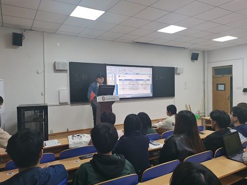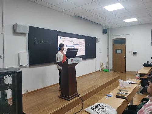 随后,吴孟分享参赛经验和心得。并对自己在“互联网+”大赛中获得的荣誉进行介绍,由此引出“互联网+”大赛的重要性。吴孟认为一个好的作品首先要做好痛点需求的调查,只有懂得大众需求什么,才能真正作出一份好的策划。吴孟强调,一份好的参赛作品需要团队的静心创作和默契配合,这是十分重要的一点。吴孟还强调ppt的重要性也是不能忽视的,优质的ppt要做到美观和言简意赅这两个方面。
