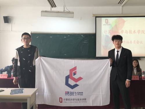 会议进行第三项,由王胜男宣读21届易班员工工作站成员名单并颁发聘书,新一届易班员工干部依次起身致谢,台下掌声激烈。会议进行第四项,王胜男老师为此次大会致辞。首先,王胜男老师对上一届易班工作站的工作表示肯定,同时指出其中存在的不足,并对这一届易班工作提出新的要求,希望21届易班工作站工作走向更高层次。紧接着由20届员工代表马金鹏发言,台下响起掌声欢迎。首先,他对全体20届易班成员的辛苦付出表示感谢,并希望易班员工工作站成员能够坚持信仰与信念,营造良好氛围,将易班建设成为广大同学服务的易班工作站。会议进行第六项,由21届员工代表李传运发言。他首先向老师以及同学的支持和信任表示感谢。他表示,21届易班员工工作站是一个新的起点,他将认真履行职责,创新易班宣传方式,打造优秀易班员工工作站。最后,会议进行第七项,由20届员工代表向21届员工代表递交易班旗帜,随着交旗仪式结束,会议落下帷幕。