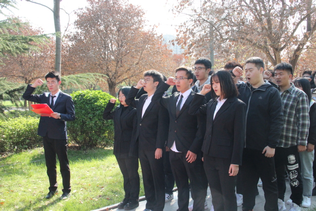之后,员工代表张鑫豪带领同学们在冯思广烈士雕像面前宣誓,大家举起右手,紧握拳头,庄严宣誓,重温入党誓词,不忘当初承诺,再次感悟入党时的决心和信念。