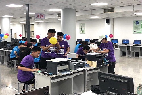 此次竞赛采用组队形式,每支队伍由三人组成,每支队伍使用一台相同规格的电脑,在规定时间内使用C、C++、Java三种程序语言中的任意一种进行程序编写,此次比赛主要考查参赛队伍的算法设计、逻辑推理、编程实现和计算机系统能力。比赛开始前,全员进行准备工作,准备人员进行机位的调整,参赛选手打开腾讯会议进行录屏,并登录相关网站。比赛开始后,参赛成员进入答题模式,参赛队员认真分析题目,各自谨慎设计算法结构,不断调试分化,分工合作,各展所长。此次比赛共有三道题目,队伍每答出一道题目,便升起一只相应颜色的气球。比赛结束后,参赛队伍将录屏视频提交。