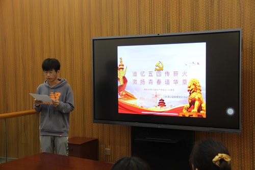 会议伊始,主持人向大家介绍了参与此次会议的成员。介绍完毕后,会议开始第一项,主持人为此次会议参会人员播放了《党史故事100讲》之五四运动,将会议向五四青年的主题靠拢。视频播放完毕后,由领誓同学带领大家重新回顾入团誓词,宣誓时会议气氛十分庄严,起到了良好的教育效果。宣誓过后,小水滴公益联盟部分成员进行了《献给青春的赞歌》诗朗诵,以文艺的方式突出了会议的主题。紧接着,会议就如何弘扬五四精神展开了问题讨论,同学们各抒己见,表达出自己的想法并与其他同学进行了思想交流,充分体现了会议的价值。在会议最后,吴盼盼对本次会议进行了总结发言。她指出,作为当代老员工,应加强对党史的学习,并积极开展类似本次会议的活动,以加强老员工对党和团的忠诚与热爱。会议结束后,同学们对会议室进行了整理并有序离开。