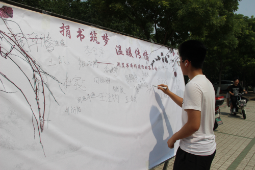 活动伊始,同学们携带自己闲置或废旧的图书,前往活动地点参加捐赠活动,并在留名板上签下自己的名字。在工作人员收到捐赠同学的图书后,对其进行整理分类并登记以便他人浏览和翻阅。捐赠同学纷纷表示,捐赠活动不仅解决了自己的闲置资源,而且可以帮助他人,是一次极具意义的活动,签满姓名的留名板上更是体现大家对此次活动的积极参与。