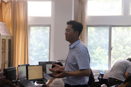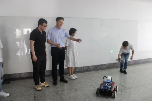 活动伊始,王志强就公司和员工培养特色进行介绍,他讲到,公司意图培养员工动手实践能力,并因此设立ACM实验室、软件工程实验室等创新实验室。随后,他带领大家参观公司的ACM实验室,在参观过程中他讲到,进入ACM实验室在老师及同学们的努力下在各种赛事中荣获国家级金奖、银奖共计数十余项。紧接着,他介绍到,同学们利用远程遥控技术以及机器视觉技术,设计出一款变电站除草机器人,以此解决变电站人员无法进入且要消除杂草对变电设施产生影响的问题。