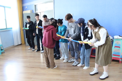 活动伊始,进行抓手指游戏。主持人首先规定了几个特殊成语,然后全体成员围成一圈相互摆好手势。由主持人朗诵一段文字,如果主持人朗诵的文字中出现相关成语,那么大家需要迅速收手,被抓到的同学需要接受惩罚。紧接着,大家进行记忆风暴游戏,即记忆并说出相邻同学的姓名和爱好,以此快速拉近周围同学的关系,缓解尴尬的气氛。